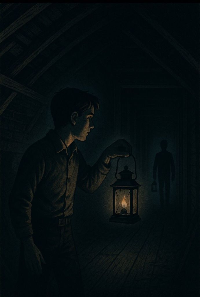Dans le grenier de sa grand-mère, Thomas découvrit une vieille lanterne noire. En la touchant, une flamme s’alluma d’elle-même, ouvrant un couloir d’ombres.