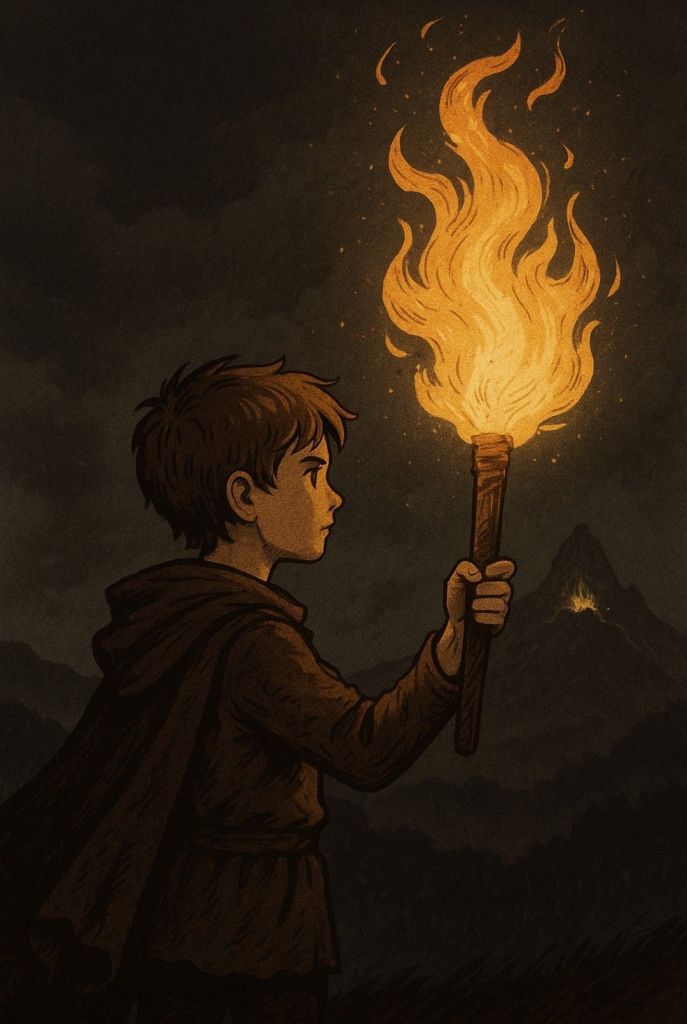 Mais dans les légendes, il devint le Héros de la Flamme Oubliée – celui qui osa croire qu’une seule étincelle pouvait sauver le monde.